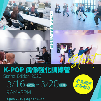 K-POP 偶像強化訓練營⚡️ — SPRING EDITION ⚡️2月17日讀畢需時 1 分鐘K-POP 偶像強化訓練營⚡️ — SPRING EDITION 2026⚡️ 3/16–20 K-Pop 偶像強化訓練營⚡️紮實舞蹈基礎+隊形編排訓練+Vocal 體驗+選秀式訓練+舞台成果展示名額20個|早鳥到3/8DM「CAMP」拎詳情+報名連結#KpopToronto #MarkhamDance #YorkRegionDance #KidsDanceToronto #GTADanceStudio